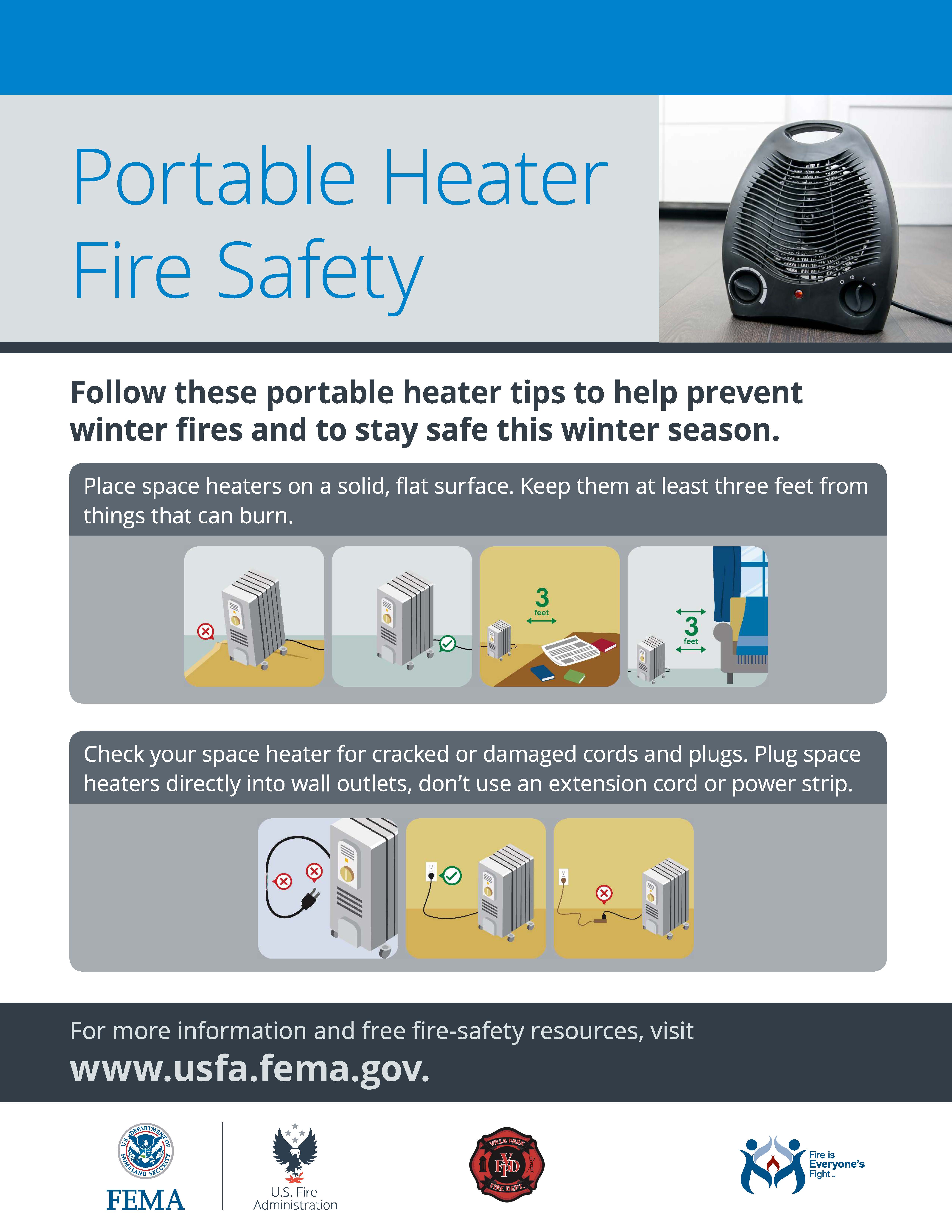 “Keep the Wreath Red” program is an annual event aimed at increasing awareness of safety during the holiday season. Outside both of our fire stations in Villa Park, there is a wreath with red lights. The wreaths remain lit 24 hours a day during the holiday season, from December 1 through January 1. If a fire occurs that is determined to be the result of a holiday decoration, a white bulb replaces a red bulb on the wreath. The hope is that the wreath will serve as a constant reminder to practice safety while displaying holiday decorations.